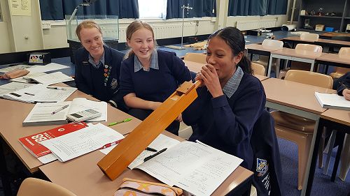 Year 13 students are learning about musical notes as part of their Waves External. Students learned about the formation of standing waves in musical instruments and how a note can be changed by changing the properties of the standing wave, like changing its wavelength in the context of musical instruments: using a smaller flute, blocking holes, or holding a guitar chord on the fret.