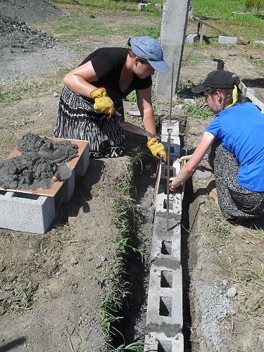 What we achieved: the digging of the trenches around the posts, making of the bricks by hand, the bricks being laid for the foundation, building of the trusses, putting the roof on, spreading the gravel out for the foundation and mixing and laying the concrete floor (18 x 11m) by hand. It was a massive job, completed with very basic equipment but, as a team we were all so proud of how much a bunch of unqualified teenagers had been able to achieve and that a usable building was the final product.