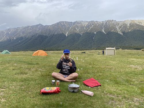 The drive to Mavora took an estimated total of seven hours, with stops along the way in Clinton, Mandeville, etc. We were kindly granted a tour of the Croydon Aviation Heritage Centre Museum in Mandeville by a friend of Mr Herrera. There we also had our lunch in a grassy field where white seeds could be seen flying above us. From there we continued our journey to Mavora Lakes, getting there a few hours later. We set up by the lake, being allowed to relax until we needed to make dinner later that night. For dinner we had a rice chicken satay and for the vegetarians fritters and rice.
