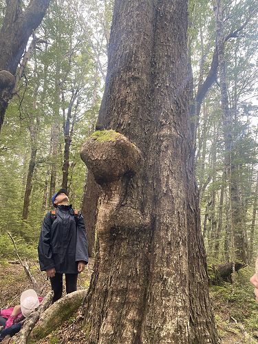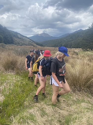 On Tuesday around midday, one of our dearly beloved friends had to depart, knocking the number of students from 18 to 17. With one less student and teacher, we continued the treacherous journey to Carey's Hut. It was a steaming hot day and the track was littered with ankle deep puddles and ankle absorbing mud that looked shallow and stable but, It's a Trap! As we continued on the journey, our huge tramping packs bruised our hips and collar bones. We finally reached the hut. It was small and wooden with three bunks, a fireplace, and a picnic table. We set up our tents and had to boil water from the Alpine streams. In the evening we had a splendid fire in which more water was boiled. And some marshmallows to accompany, although we couldn’t roast them as we didn’t have any good sticks. Most people got harassed by a bee, Arrochar named it “Davy Boy.”