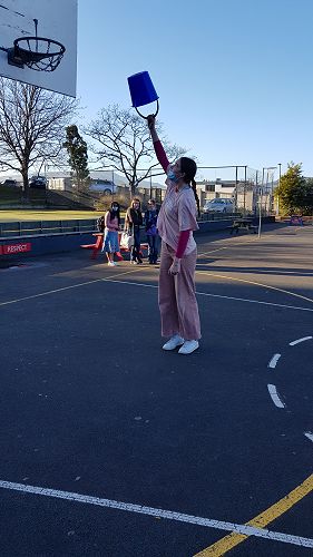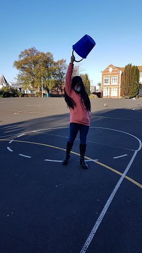 Year 13 students were challenged to swing the bucket and go as slow as they could without getting drenched: Abby Harris, Abbey Mason and Christine Hu were particularly daring.