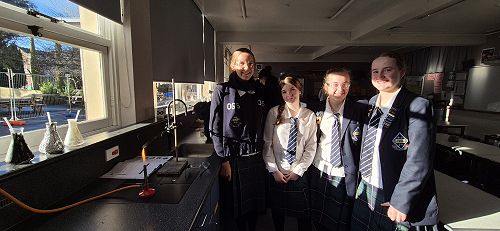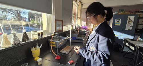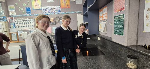 In Year 11 Science, students have been exploring the modes of heat transfer through two hands-on experiments. The first demonstrated conduction, where a metal rod was heated, and students observed as pins attached to it with wax fell off in a sequence, showing how heat was transferred through the material. The second experiment focused on radiation, using conical flasks with different covers. Students placed these flasks in sunlight to see how the varying covers affected the amount of heat absorbed, which in turn warmed the water inside.