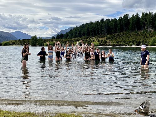 On Monday, we trickled into the school grounds, huge bags in hand and bikes ready to be loaded onto the trailer. The weather only got better as we drove closest towards Central Otago. Music was blasting in Mr McGowan’s ears for the four to five hour drive. When we arrived at the campsite, we had a brief scan of the area as we waited for the arrival of the other van. The Wanaka sun was scorching down on us with a temperature of 29 degrees. As soon as the other van arrived, we got to work unloading the vans and setting up tents. Tent groups chose their patches of grass to set up camp on for the week, and tents were put up as quickly as possible. At this point the heat was unbearable and people were sweating profusely by just sitting in their tents. Once all the tents were assembled, there was no time to waste before getting into the refreshing water of Mata-Au. We hurriedly changed into our togs and headed down to the water, a one-minute walk from the camp. Swimming each day in the river before dinner became a routine for all of us, including Miss Young and Ms Graamans. The teachers thought we wouldn’t last ten minutes in the freezing water, but we exceeded their expectations tremendously.