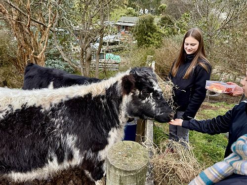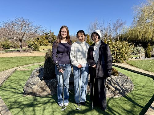The senior international students who are not doing NCEA exams had the opportunity to explore some of the beauty of the Dunedin area. We had six days to do some exploring into life here. We started off with morning tea at Mrs Boomer’s, and finished with more baking and eating at her house. In between the eating, we went to Orokonui Ecosanctuary where we saw a lot of bird action, but no insomniatic kiwi bird was wandering that day. We had planned to walk up to Flagstaff but the weather forecast was not so favourable for that so we went to Unipol to play badminton with some self-made rules. The weather was perfect for a game of mini golf in Mosgiel on Monday so we had a picnic lunch amongst the holes following the game. On Tuesday, we got to see and hold the cutest lambs in the world, the Swiss valais breed, at Iconic Farm Tours. At the farm, we also got to feed the miniature Galloway cattle, Leila and Elvis. Courage, the uncourageous alpaca, greeted us, but Taffee was the star alpaca who gratefully accepted slices of apple and lots of petting. Super-soft ragdoll cats are also there for cuddling along with a range of other uncuddled birds and animals. We had a great, small group of students and it was wonderful to spend more time with them and to show what Dunedin has to offer.