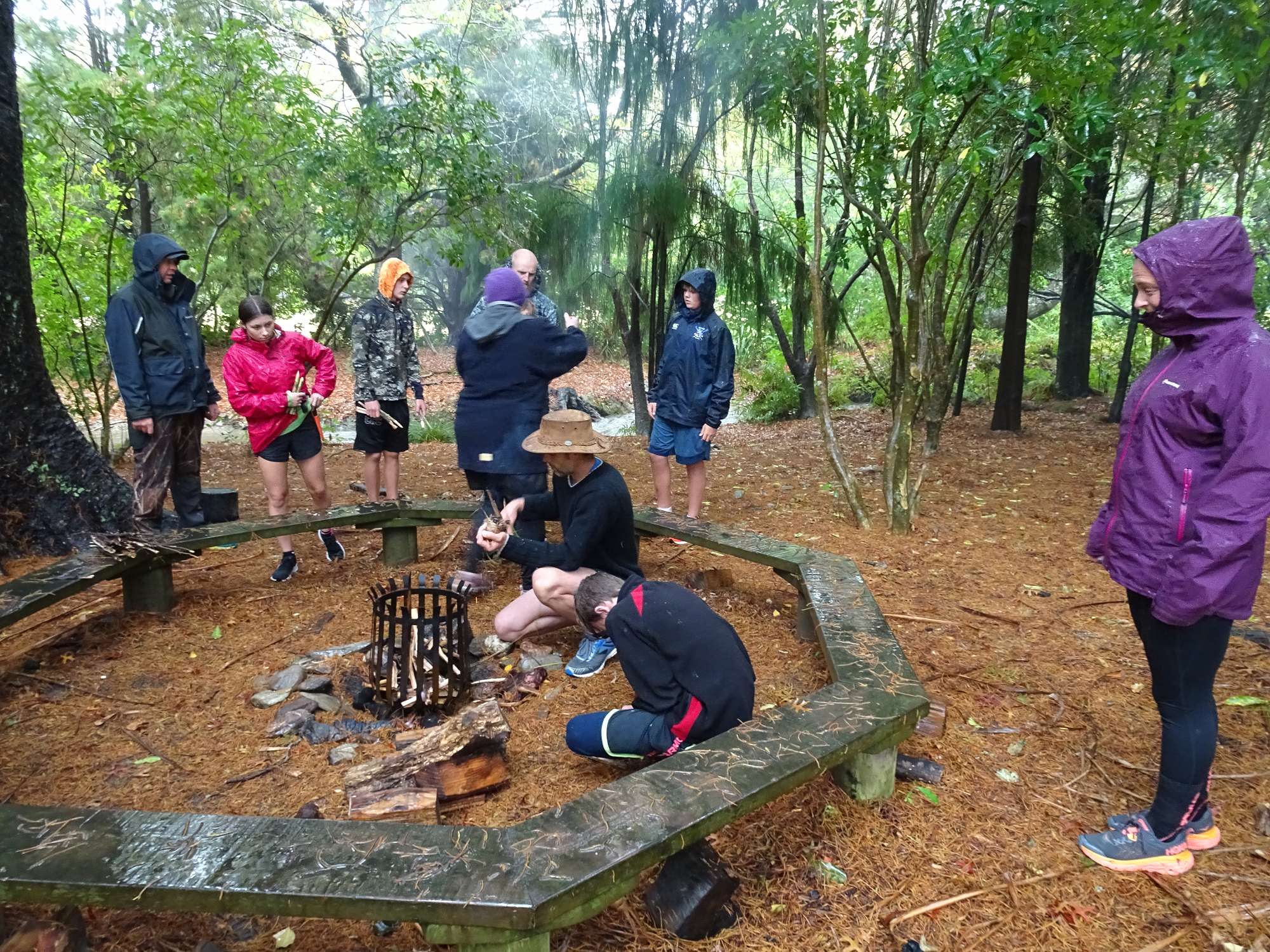 Friday morning we woke up, and it was still drizzling, so we packed up and walked down the track to wait for our instructors. We all got picked up, then went back to camp to unpack and clean everything. We then spent the afternoon learning knife skills and getting taught how to make a fire with no lighters or matches.