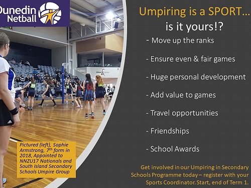 Netball Umpiring Ms C. Hokianga, Sports Co-ordinator — March 13th, 2019 Interested in umpiring? See the notice below for more information. Gallery