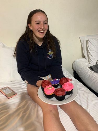 After a long morning of travel, and a wee birthday celebration for Andie, the team headed to the pool for the first session of racing. A few hours later saw OGHS collect its first medal, and some speedy relays had been swum, with the whole team having the chance to compete in the first of six sessions. There were a large number of competitors from secondary schools around the country represented which contributed to very competitive and fast races. The next five sessions were full of personal best times, laughs, team bonding and for a few people some new togs!