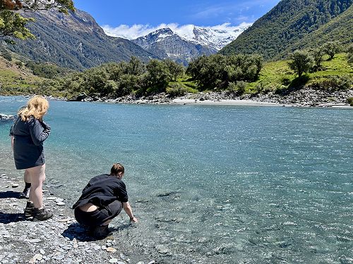 The next day we woke up bright and early so that we could drive to the Matukituki Valley and begin our walk to Mt Aspiring hut. After the long drive we were all eager to get out and begin the walk. We hiked through the spectacular valley, surrounded by mountains the entire time. At lunch we stopped beside the river where we took photos of the turquoise water and refilled our drink bottles. There were also loads of friendly sheep and cows for us to interact with. As gorgeous as the journey was, we were all very thankful when we finally saw the hut. Once we arrived at the hut we set up tents, cooked our dinners and went to sleep.