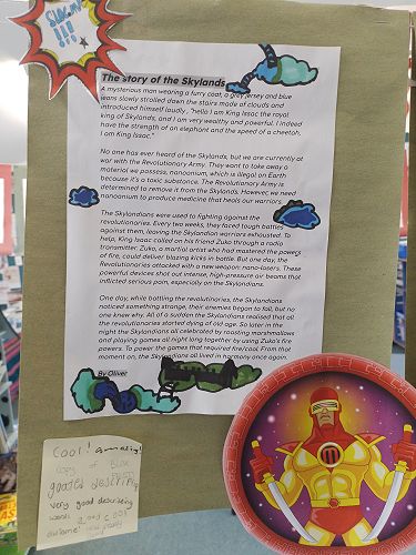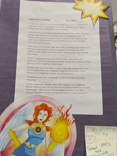 My superhero was Pickle Man, and his nemesis was Potato Man. I was really pleased with how my final presentation turned out! By Ollie K