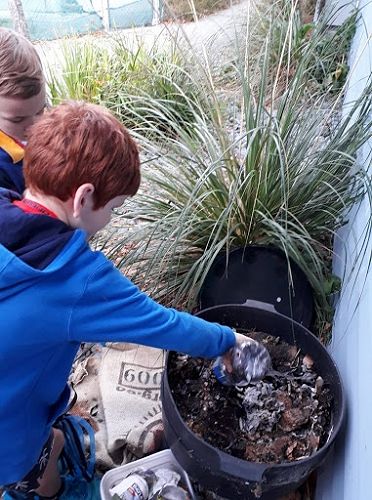 We have been looking after our mini worm farms that we made at the Botanic Gardens. They have been living in our classroom for 3 weeks and we had to feed them some food scraps. Finally we were able to transfer them to the big school worm farm. We were amazed at how much worm poo we found in our containers!!