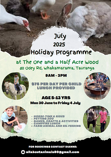 At The One and a Half Acre Wood we offer a fun and educational holiday program where children can enjoy hands-on experiences with a variety of friendly animals.