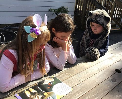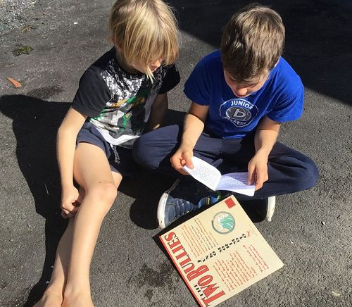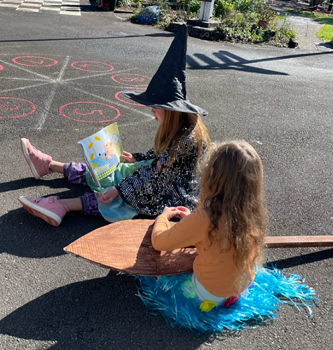 Then everyone went inside and watched a movie that room 1 had made. After room one's movie the winners of the best costumes were called out and those winners were; Ada as the Queen of Hearts, Coby as Cat in the Hat on Vacation to Hawaii and Jacinta-Lee as Puss in Boots. Then after the winners had been announced each class got their books that they had been writing in class and buddied up with someone in another class. Room 6 read their stories to the kids in room 3 and they really enjoyed them.
