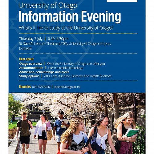 Visit this articleThe University of Otago Dunedin Information Evening is being held on Thursday, 7 July.