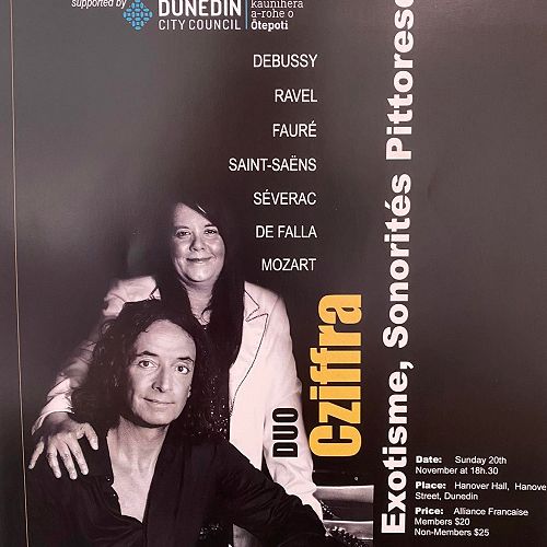 Visit this articleThis coming Sunday, 20 November at 6.30pm in Hanover Hall, Hanover Street, the Alliance Francaise de Dunedin is presenting a Concert by the French Piano Duettists, the "DUO CZIFFRA".