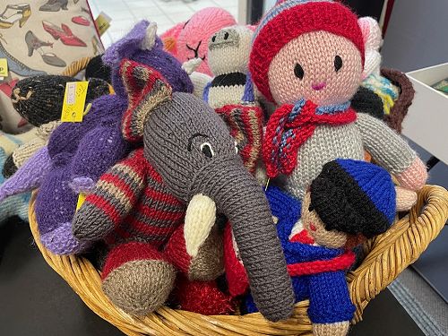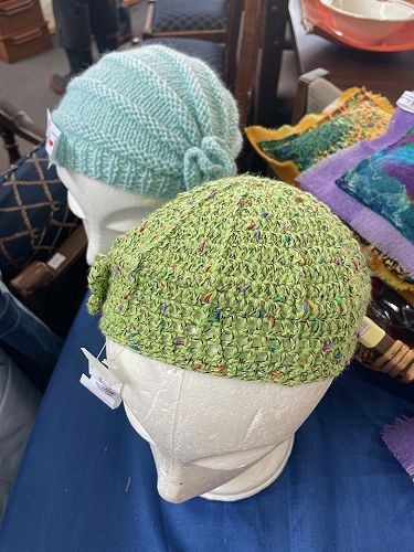 Knitted items include headbands, scarves, shawls, bed socks, hand and foot warmers, muffs, baby clothes, knee rugs and jerseys. There are also beautiful merino beanies made from wool off-cuts donated by Glowing Sky - the shop has sold over 3000 of these warm merino beanies - and a range of colourful kids toys called 'Oddballs'.