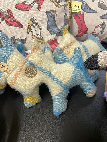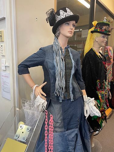 Shrugs and kimonos are sewn. As are unique gifts like a range of Scotty Dogs made from old blankets and an amazing denim steam punk outfit that can be rented. The outfit, which consists of a skirt, top and hat, was recently hired for an Auckland wedding.