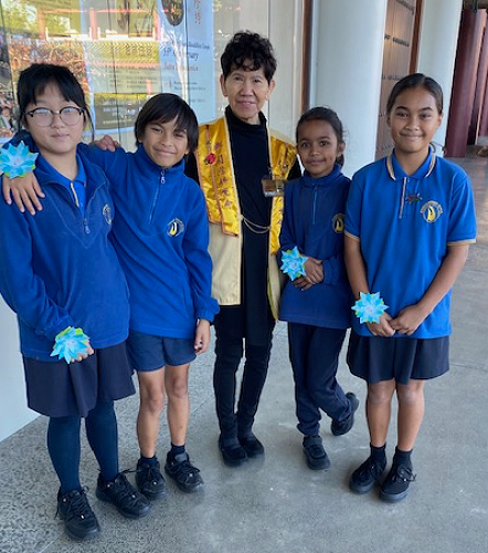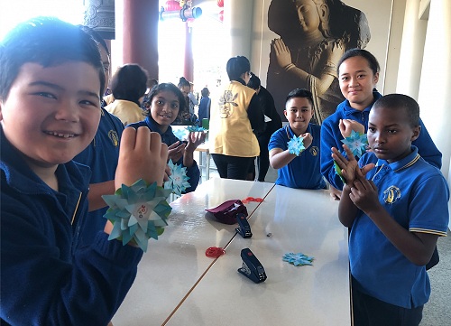 Upon arrival, the students were warmly welcomed by the BLIA members and volunteers. The students learnt about the value of Three Acts of Goodness and Four Givings through interesting activities like bathing the Buddha, striking the wishing well, making lotus flower origami, Tai Chi and mindfulness meditation. The Temple also specially prepared delicious refreshments, Laba Congee, for the students. There were 4 police officers who came to support the event and interacted with the students.