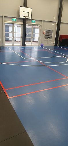 Our basketballers and badminton players are very happy they have new court markings in the hall now. The court markings were painted on, and give us one mini basketball court and two mini badminton courts