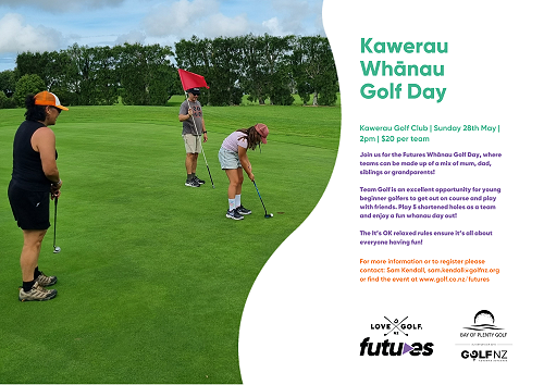 - Kawerau Whānau Golf Fun Day | Sunday 28th May, 2:00 pm | $20 per whanau
