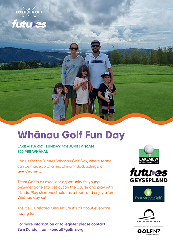 - Lake View Whānau Golf Fun Day | Sunday 4th June, 9:30am | $20 per whanau