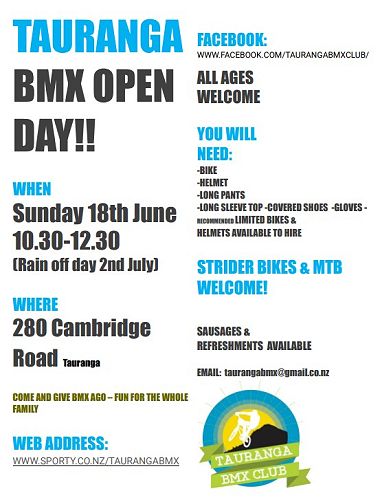 This month the Tauranga BMX club is holding an open day! See the attached brochure for more information.