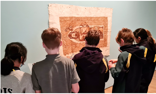 They enjoyed looking at her work and then produced a group Tapa inspired by her prints and storytelling