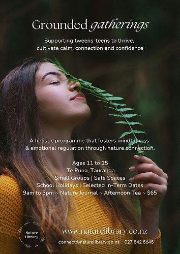 Nature Library has a new Grounded Gatherings programme to support tweens-teens to thrive, cultivate calm, connection and confidence. See the attached flyer for more details.