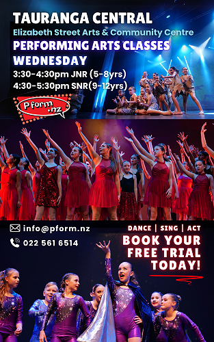 Pform.nz is holding performing art classes at the Elizabeth Street Community & Arts Centre, for ages 5-8 & 9-12, which covers our triple threat singing, dancing and acting. See the attached flyer for further details.