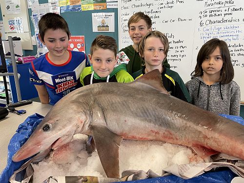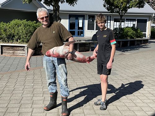 The trailer pulled into school with the latest Rutherford Science specimen on board. Caught on Saturday and delivered to school on Sunday by Peter Whale and his son Macklin.