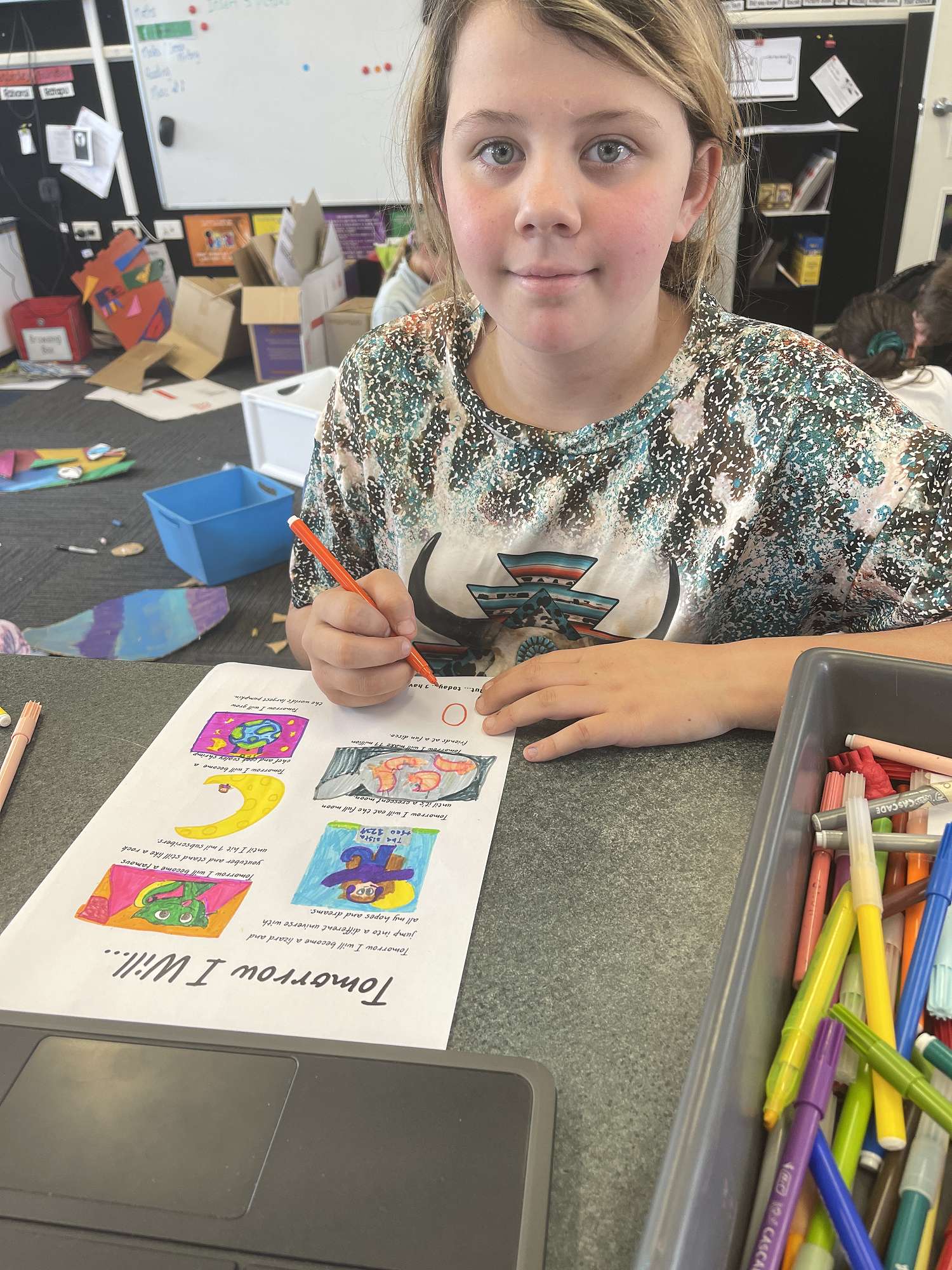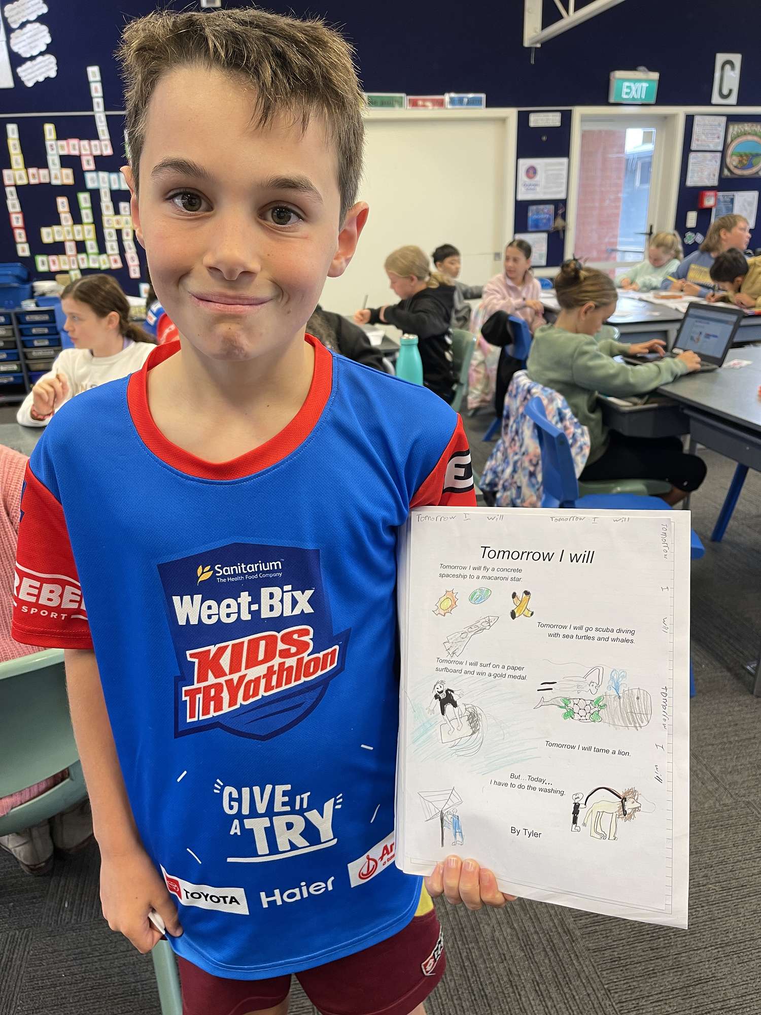 We have also been really enjoying Cameo Writing (Poetry). This is when we look at a particular structure or language feature and then shape our own ideas through poetry. Last week we looked at using our imagination along with repetition. We wrote poems called 'Tomorrow I will...' We got to think of some wild and wacky things we could do tomorrow, and then back to reality with a chore or job we have to do today.