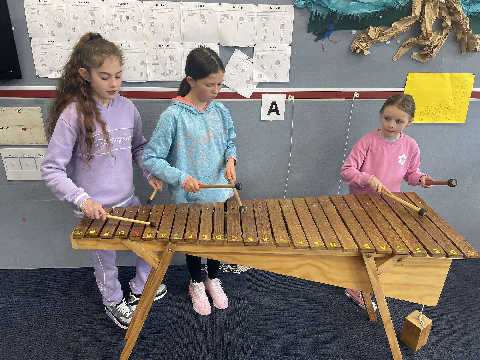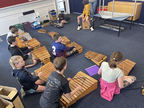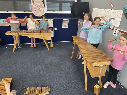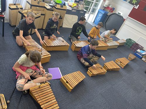 We are learning We Will Rock You on the marimbas along with a song called Ruamoko (God of earthquakes) We are getting the hang of it and it's sounding great!