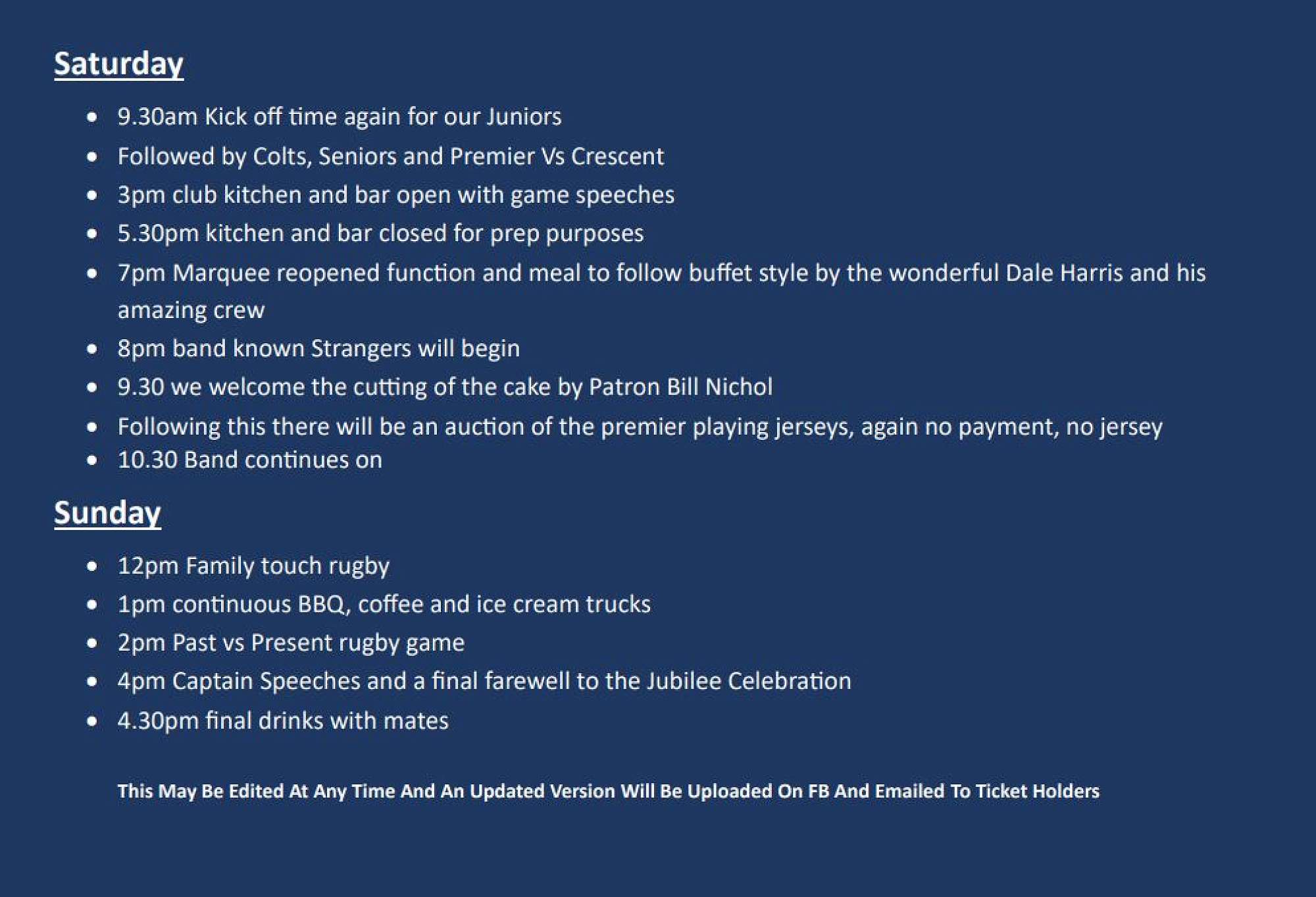West Taieri Rugby Club 120th Jubilee