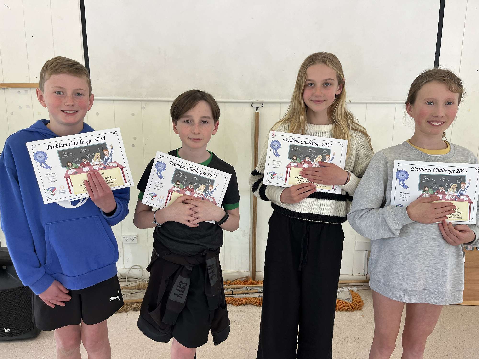 Students achieved outstanding results in this years problem solving challenge run by Otago University. Five times through the year students have to solve 5 problems. The problems become more challenging as they work through the 25 problems.