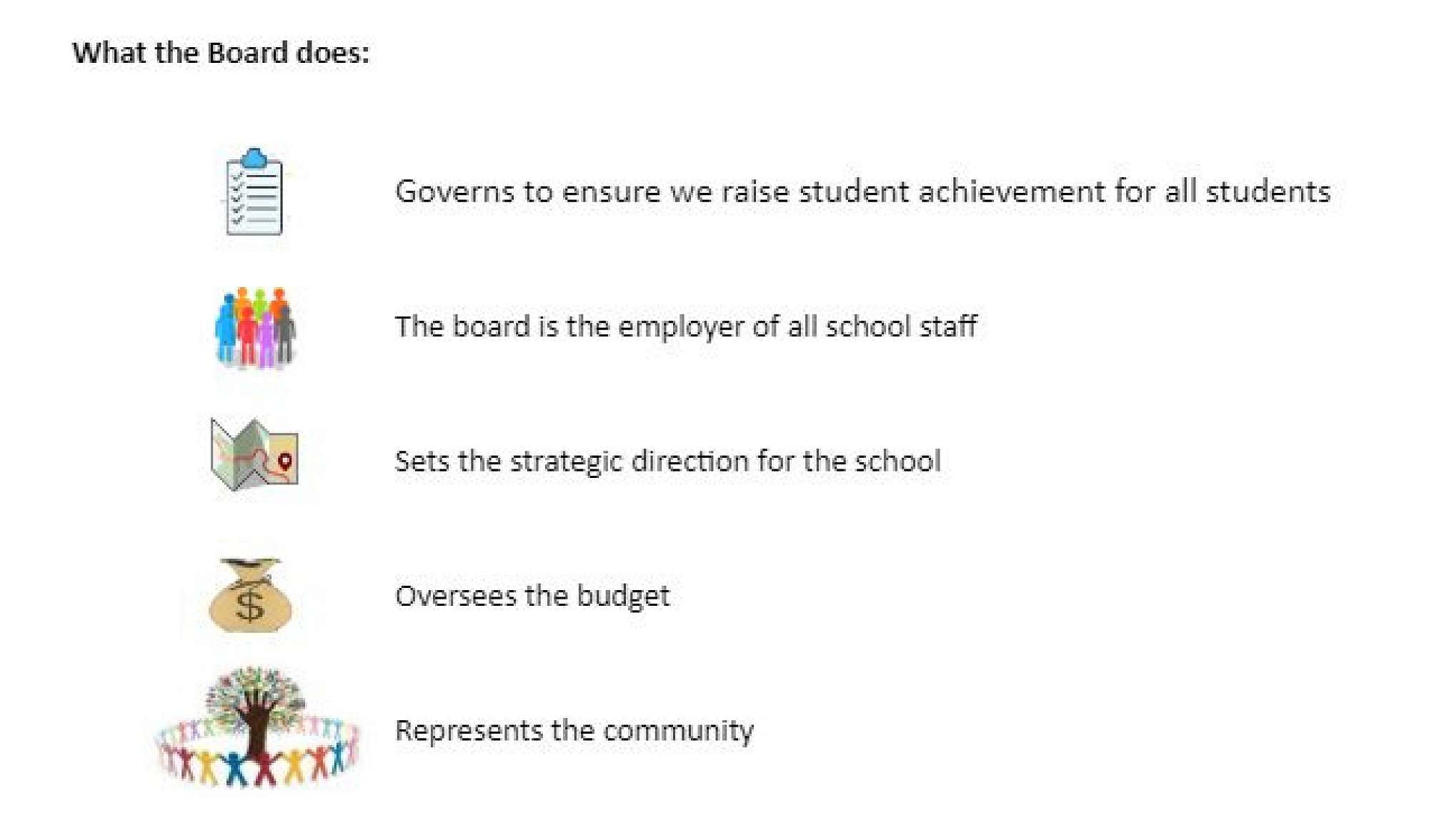 Being on the school board is a great way to contribute to the school community, and to understand more about how the school is run.