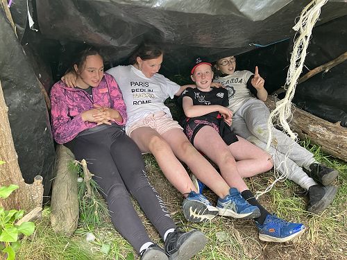 I really enjoyed the shelter building at camp because it was cool to work in a team to build a shelter that could protect your team from a bucket of water.