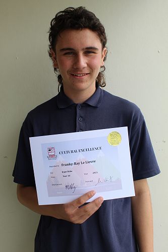 - Ethan Ricketts - Academic Excellence Health & Physical Education; Academic Merit English; Cultural Excellence Kapa Haka