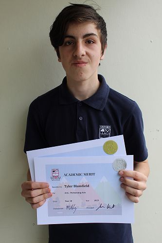 - Tyler Blomfield - Academic Merit- Arts - Performing Arts; Cultural Excellence Junior Band; School Production