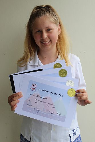 - Isabella Eginton Abbott - Academic Excellence Technology - Food and Nutrition; English; Academic Merit Science; Social Studies; Cultural Excellence School Production; Service Excellence- House Leader Tui; Year 9 & 10 Whyte Cup; Citizenship Award; Bob Norrish Year 9/10 Attitude to Learning