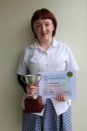 - Samantha Sloane - Academic Excellence English; Languages - Spanish; Social Studies; Academic Merit Technology - Food and Nutrition; Arts - Visual; Outstanding Achiever Award Year 9