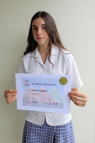 - Hannah Langford - Academic Excellence Social Studies; Academic Merit -English