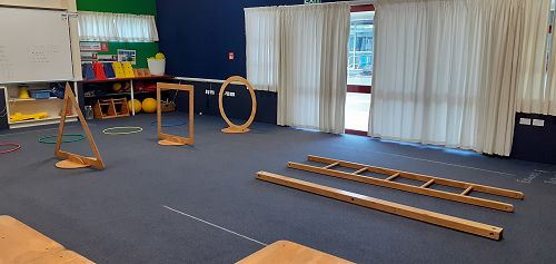 The variety of activities and set up of equipment relate to certain skill foci for up to two weeks. Sometimes there is the surprise of using the rainbow parachute or moving to music routines where often a bean bag is involved.