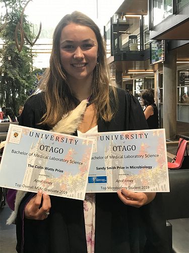 April Jones recently graduated from Otago University with a Bachelor of Medical Laboratory Science (BMLSc).