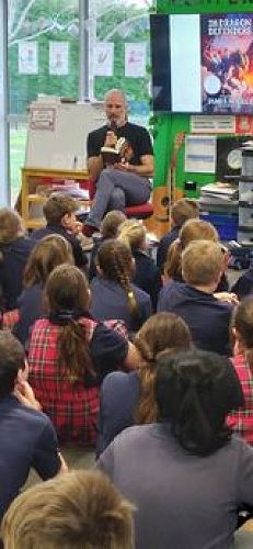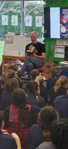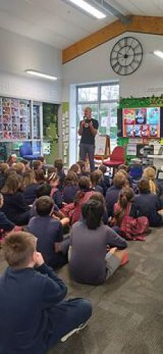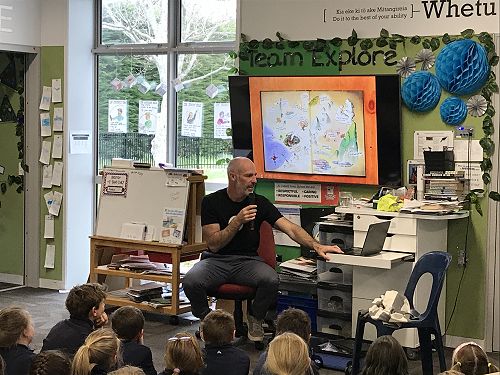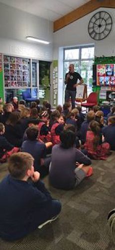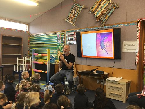 On Wednesday the Y1-6 students were treated to a visit from a NZ author. Many students have already read some of James Russell's books, which we have in our school library.
