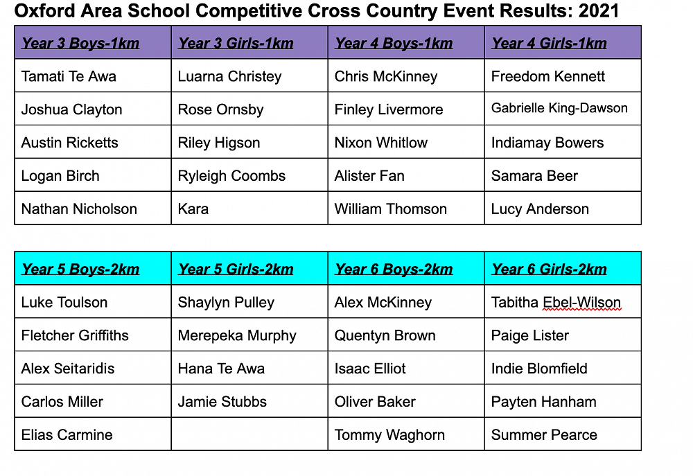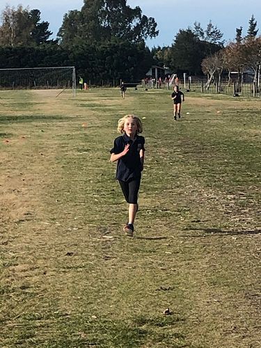The competitive runners set off first with the Year 3/4s covering 1 km, the Year 5/6 ran 2kms, and the Year 7/8 runners did 3 kms around the Oxford A&P Showgrounds and Pearson Park Oval. There were nine teachers or parents marshalling as well as encouraging the runners to give their best efforts. There were some great times achieved with eighteen Y5-8 students invited to compete at the Eyre Cluster Cross Country at Cust next Wednesday.