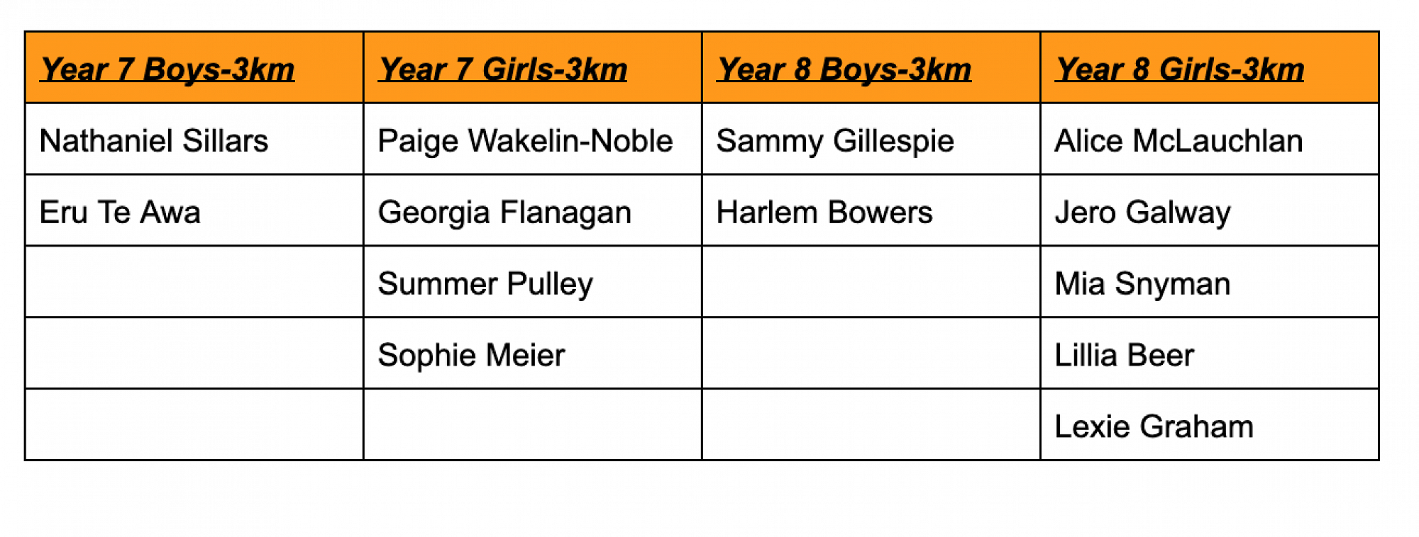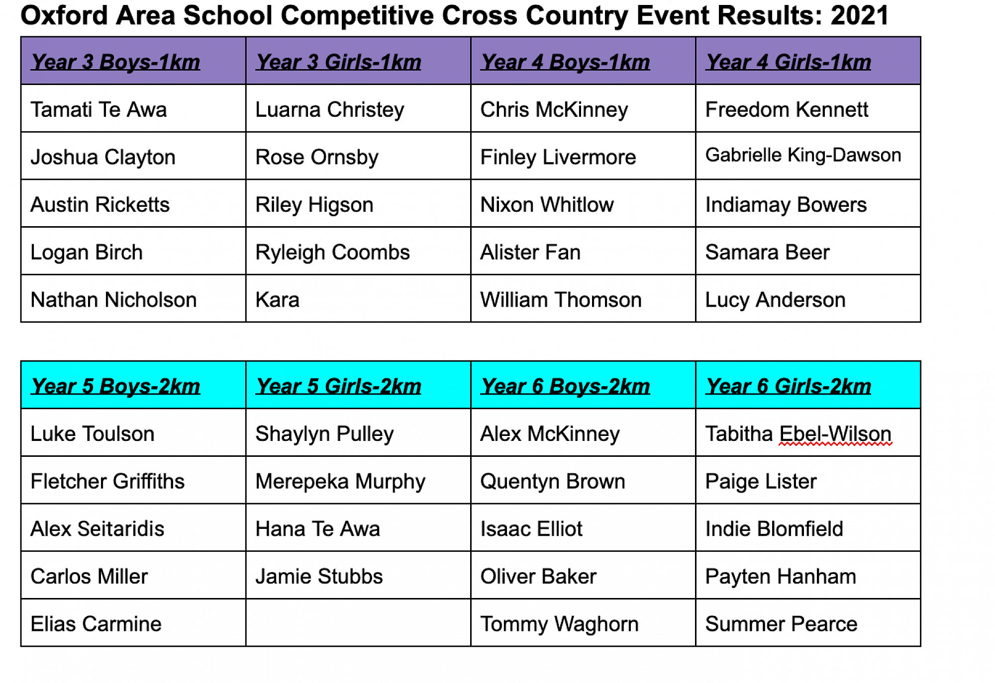 Year 1-8 Cross Country