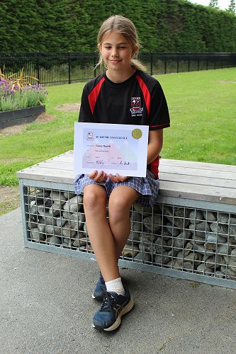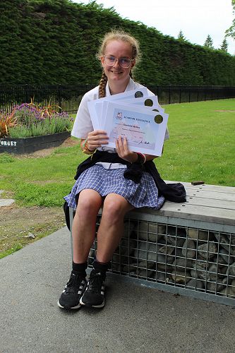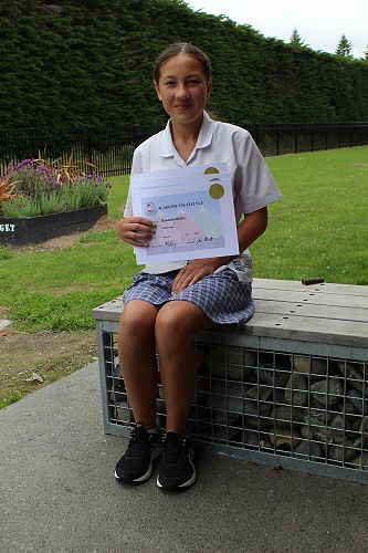 Zoey Anderson - Academic Excellence Spanish; Academic Merit- Science; Cultural Excellence- Kapa Haka; School Production; Senior Choir; Service Excellence- PALs; Sport Merit -Basketball; Principal's Award Year 8 Leader; Howden Cup for Effort & Involvement Year 8 (Joint Winner)