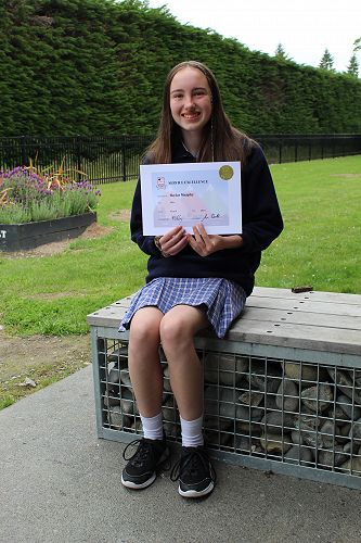 Abby Baard - Academic Merit Spanish; Cultural Excellence School Production; Service Excellence Peer Mediators, PALs; Colin White Cup for Participation & Contribution in Year 7 (Joint Winner)