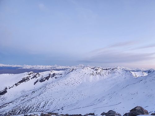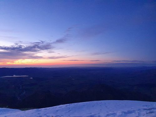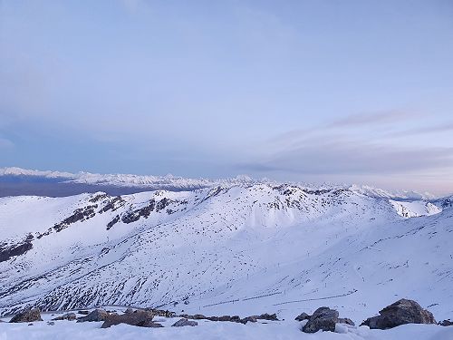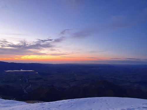 Next we made a snow mound but unfortunately, the temperature wasn't lower than 0 degrees so we were unable to spend the night in our snow mound. This was still a fun task to do to create a snow mound properly. We found this snow mound would have been a lot warmer than the tents we slept in that night. After setting up our tents for the night we cooked freeze-dried food and soup to keep us warm and full for the night ahead. After a night in the tent, we woke up at 5 am to trek up to the top of Mt Dobson to watch the sunrise. This was challenging but was a great success once we were up the top watching the sunrise and a great view of Mt Cook.