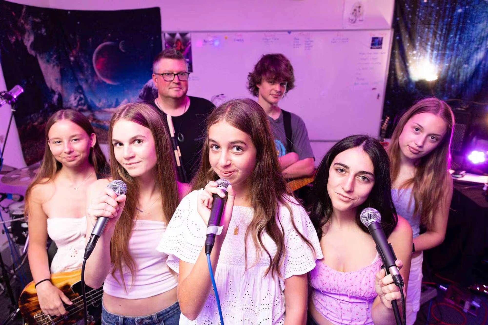 The talented members of the Sunkissed Taylor Swift tribute band are Tamara Du Toit (Y12), Stella Riley (Y11), Videl Harrison (Y10), Taylah Medeiros (Y12), and Cybele Chapman (Y10). Supporting them is our amazing Itinerant music teacher, Kurt Somervell, and Year 12 student James Ferns.