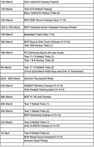 Papamoa College Sport for 2021.